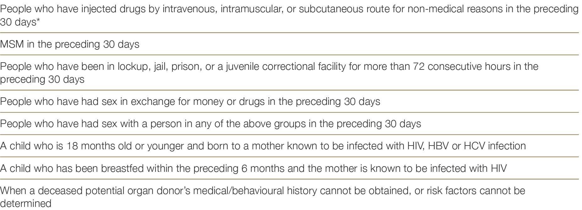 2.3.1 Donors at increased risk of HIV, HBV and HCV