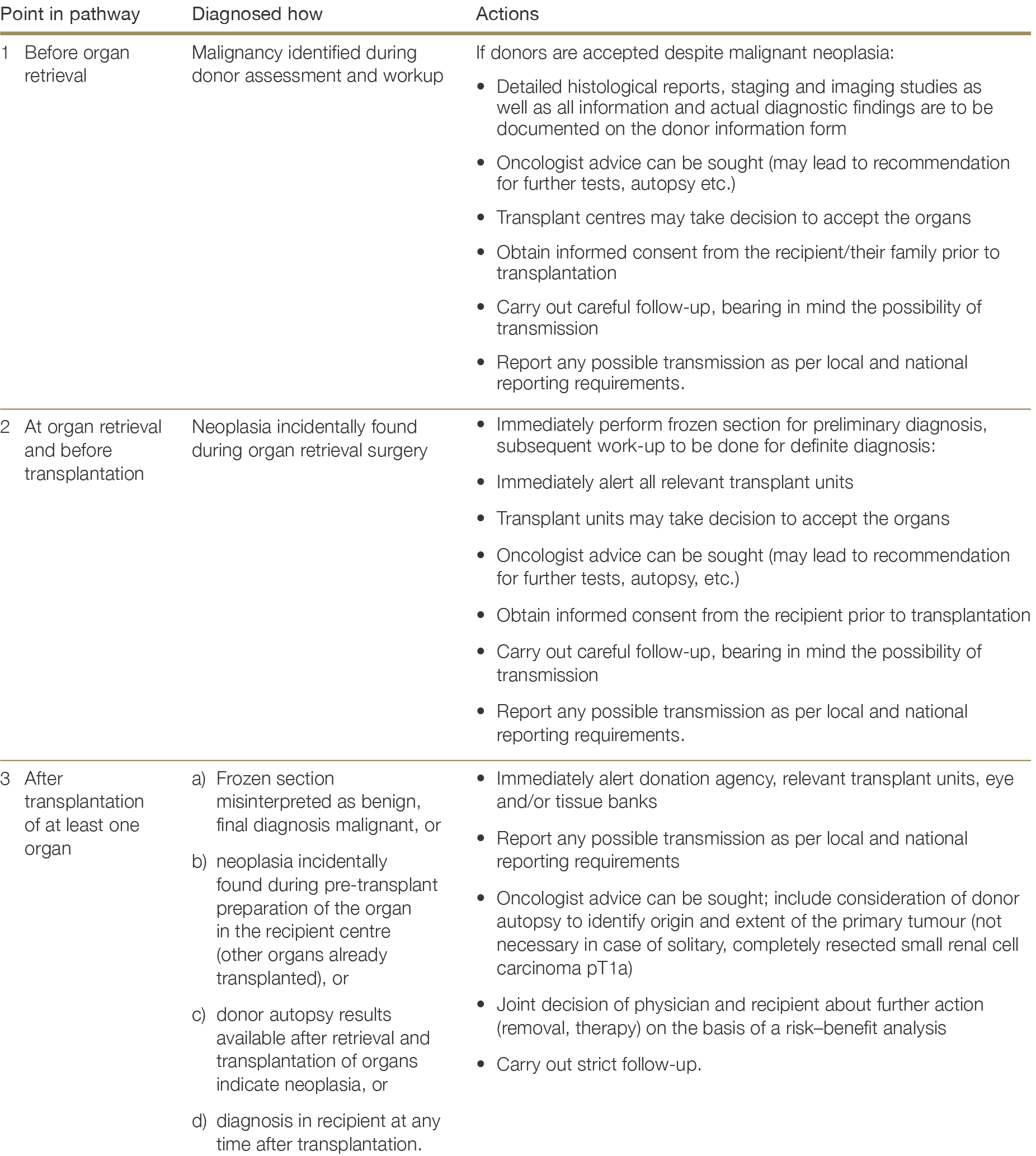 2.4.8.1 Actions in the case of suspected or confirmed donor-transmitted malignancy