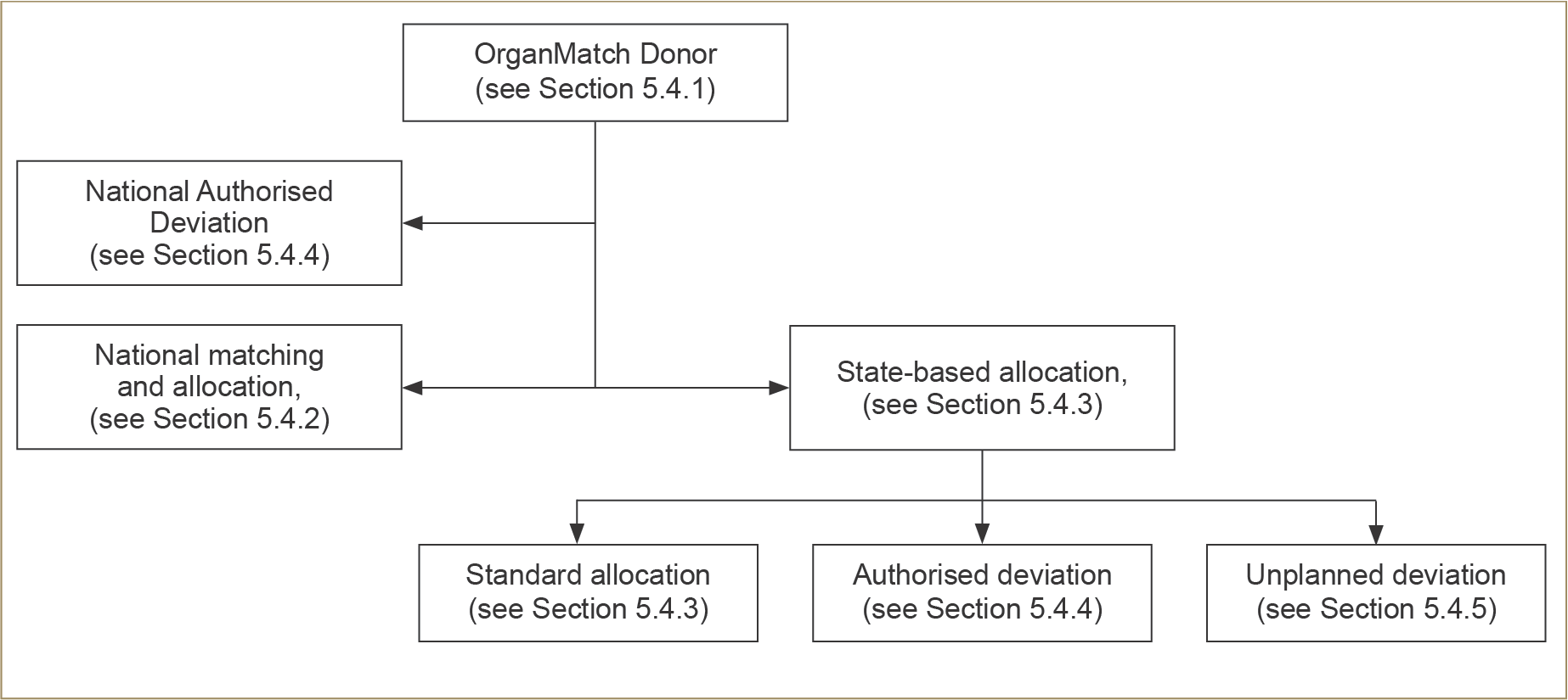 From a practical viewpoint, state-based allocation helps to minimise cold ischaemic time and allows for a more efficient use of local donation, laboratory, and retrieval team resources. There is good evidence that shorter ischaemic times improve transplant outcomes, especially for kidneys of lower quality. An additional advantage of state-based allocation is that it allows for state-based transplant advisory committees to continually review and improve the local allocation algorithm in order to reduce inequities and imbalances within their state. It also allows states to streamline their processes for allocating kidneys that are of lower quality or pose certain additional risks (e.g., possible infection or malignancy or anatomical difficulties). These kidneys are often very difficult to successfully allocate, and efficient local systems help to achieve the best use of these organs. The state transplant advisory committees review, audit and guide the principles applied in achieving successful allocation in these less typical cases that assist in maximising organ utilisation rates.14,35 Some of these state-based scenarios are described below in Section 5.4.4 (dual organ allocation) and Section 5.4.5 (unplanned deviation).14 Wheeler DC and Steiger J. Evolution and etiology of cardiovascular diseases in renal transplant recipients. Transplantation, 2000;70(Supp):SS41. 35 Meier-Kriesche HU and Kaplan B. Waiting time on dialysis as the strongest modifiable risk factor for renal transplant outcomes: a paired donor kidney analysis. Transplantation, 2002;74(10):1377–81. ×
